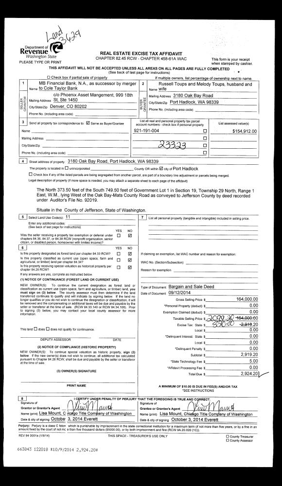 | Mailing Address: | 71 N CHANDLER CT B PORT LUDLOW, WA 98365 | % Ownership: | 100.0000000000% |
