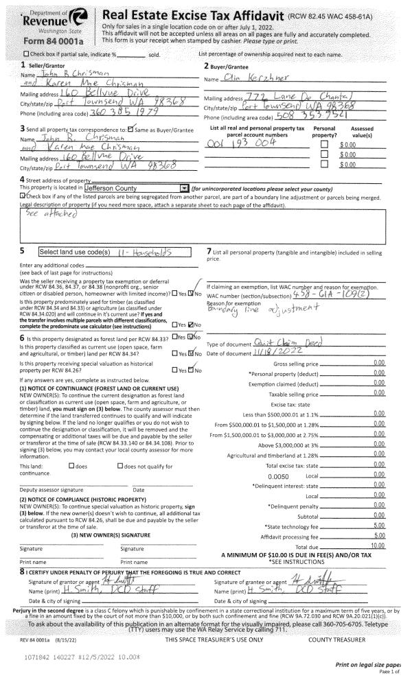 | 6 | 08/05/1994 | SWD | Statutory Warranty Deed | POPE RESOURCES | MERRITT, RICHARD A & RUTH A/TR | 0 | 0 | $147,000.00 | 74857 | 0 |