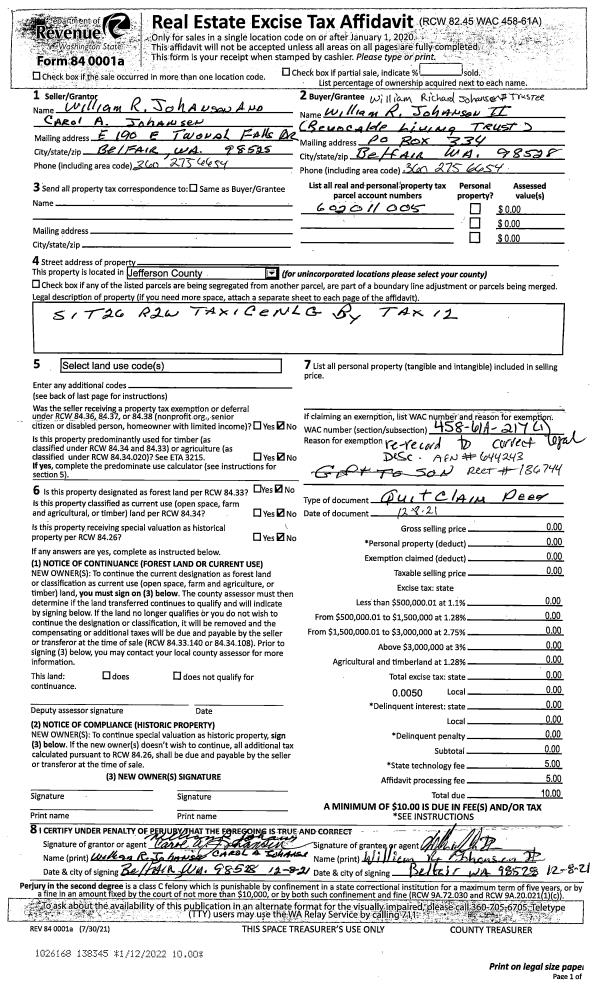 | 8 | 08/03/1999 | QCD | Quit Claim Deed | ROLL, WARREN R/MARY MARTH | ROLL, GUNNAR/TRUSTEE | 0 | 0 | $0.00 | 87606 | 0 |