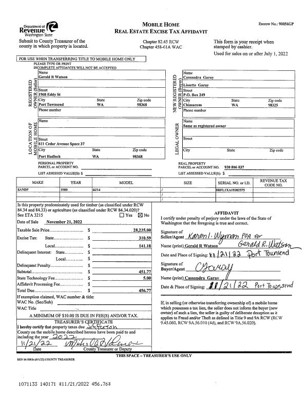 | Mailing Address: | ANTOINETTE P OVERMAN 40 E KINKAID ST PORT HADLOCK, WA 98339-9613 | % Ownership: | 100.0000000000% |
