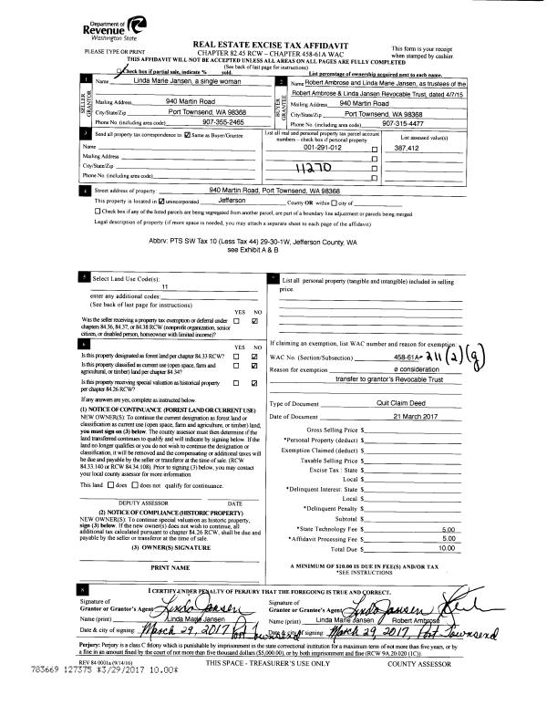 | Mailing Address: | 183 W HORTON ST PORT HADLOCK, WA 98339-9650 | % Ownership: | 100.0000000000% |