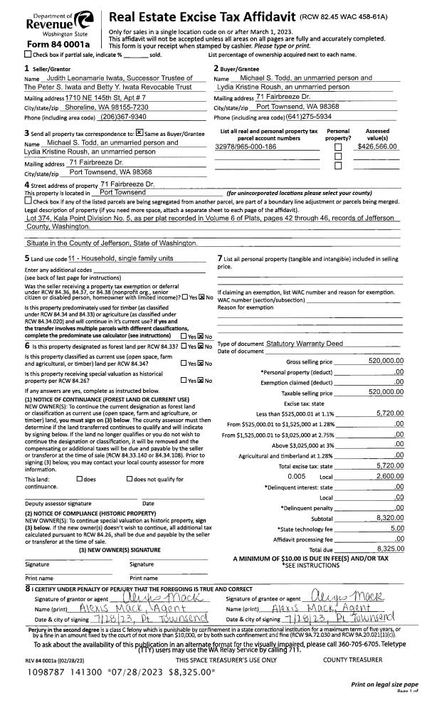 | Mailing Address: | PO BOX 609 PORT TOWNSEND, WA 98368-0609 | % Ownership: | 100.0000000000% |