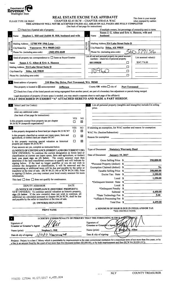 | Mailing Address: | 183 W HORTON ST PORT HADLOCK, WA 98339-9650 | % Ownership: | 100.0000000000% |