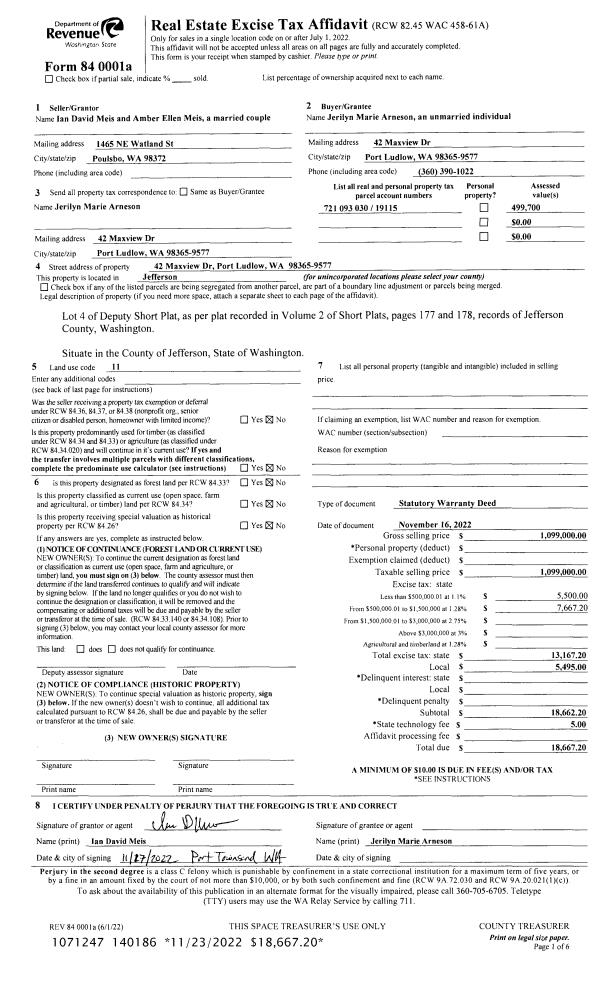 | 2 | 06/26/2014 | SWD | Statutory Warranty Deed | DARLENE DURFEE | KATHRYN E MARSHALL | | | $147,000.00 | 121444 | |