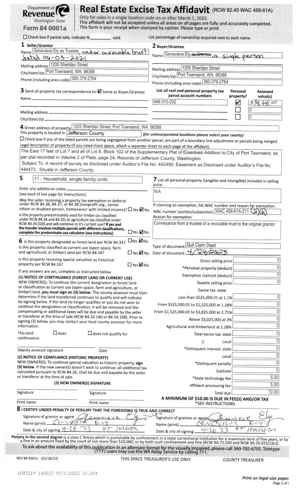 | Mailing Address: | CAROLYN I RUBY 133 E MOORE ST PORT HADLOCK, WA 98339 | % Ownership: | 100.0000000000% |