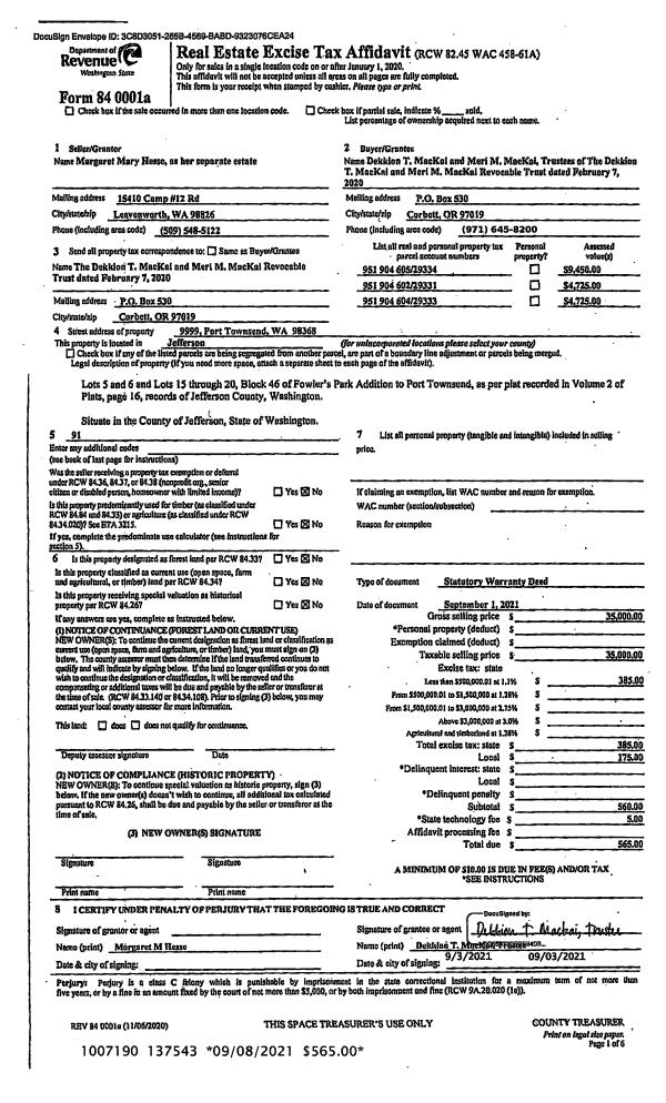 | 4 | 11/17/2009 | SWD | Statutory Warranty Deed | REYNOLDS, JAMES/ROBIN | HARVEY, JAMES/ELIZABETH | 0 | 0 | $10,000.00 | 113672 | 0 |