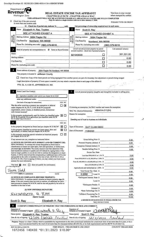 | Mailing Address: | LORRE M MC VAY 741 IRONDALE RD PORT HADLOCK, WA 98339-9526 | % Ownership: | 100.0000000000% |