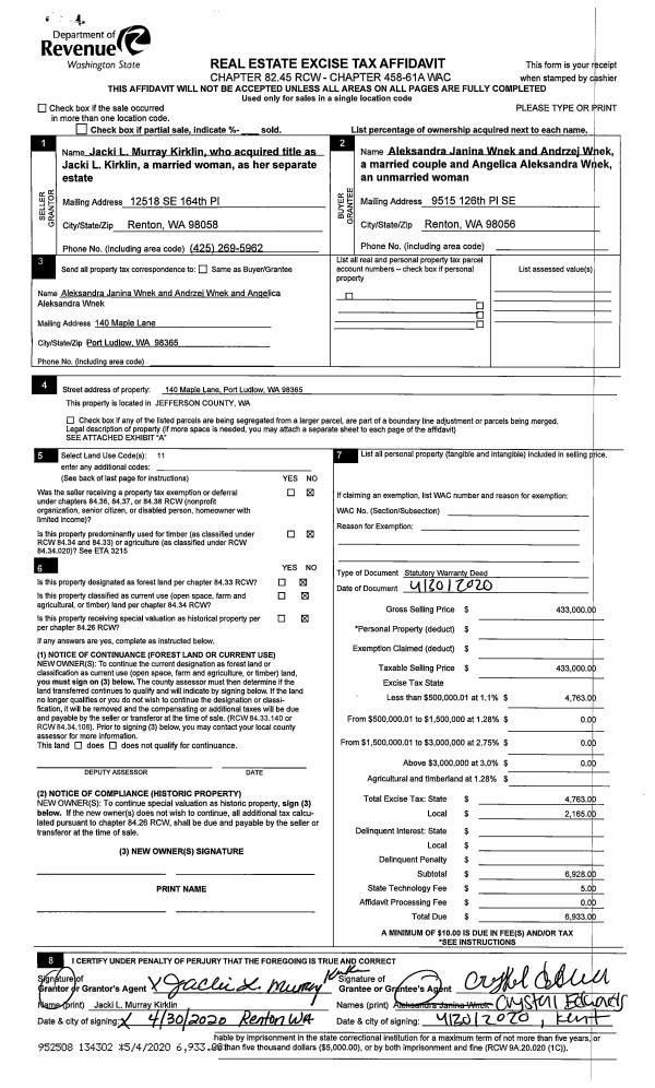 | Mailing Address: | PO BOX 618 PORT HADLOCK, WA 98339-0618 | % Ownership: | 100.0000000000% |