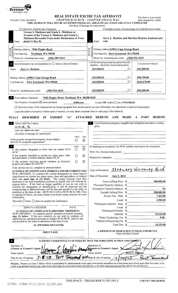 | Mailing Address: | PO Box 681 PORT HADLOCK, WA 98339 | % Ownership: | 100.0000000000% |