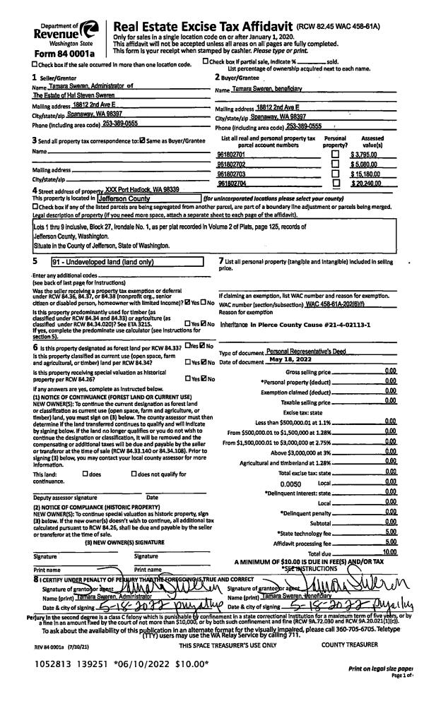 | Mailing Address: | 21 MARKET ST PORT HADLOCK, WA 98339-9616 | % Ownership: | 100.0000000000% |