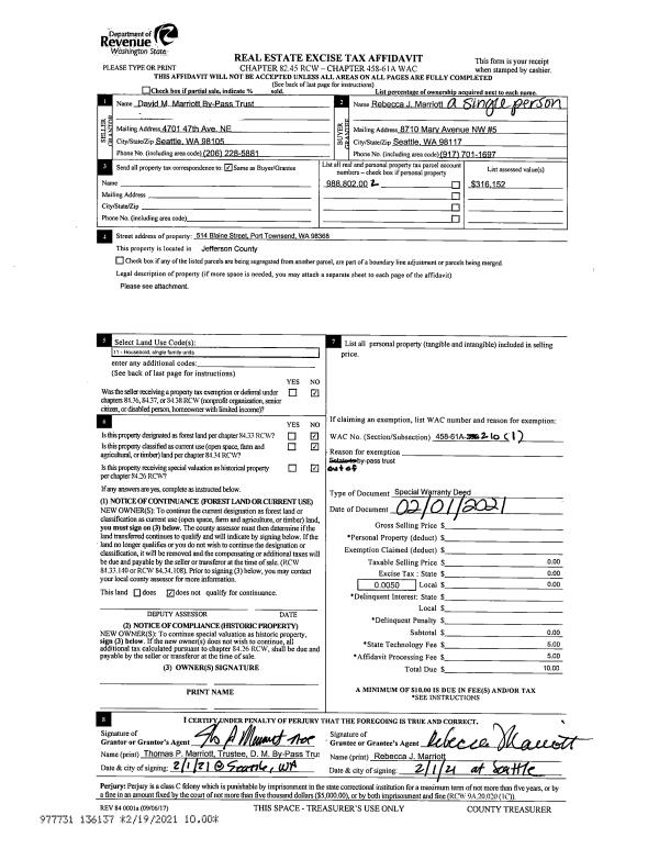 | Mailing Address: | 101 MOCKINGBIRD LN PORT LUDLOW, WA 98365-8787 | % Ownership: | 100.0000000000% |