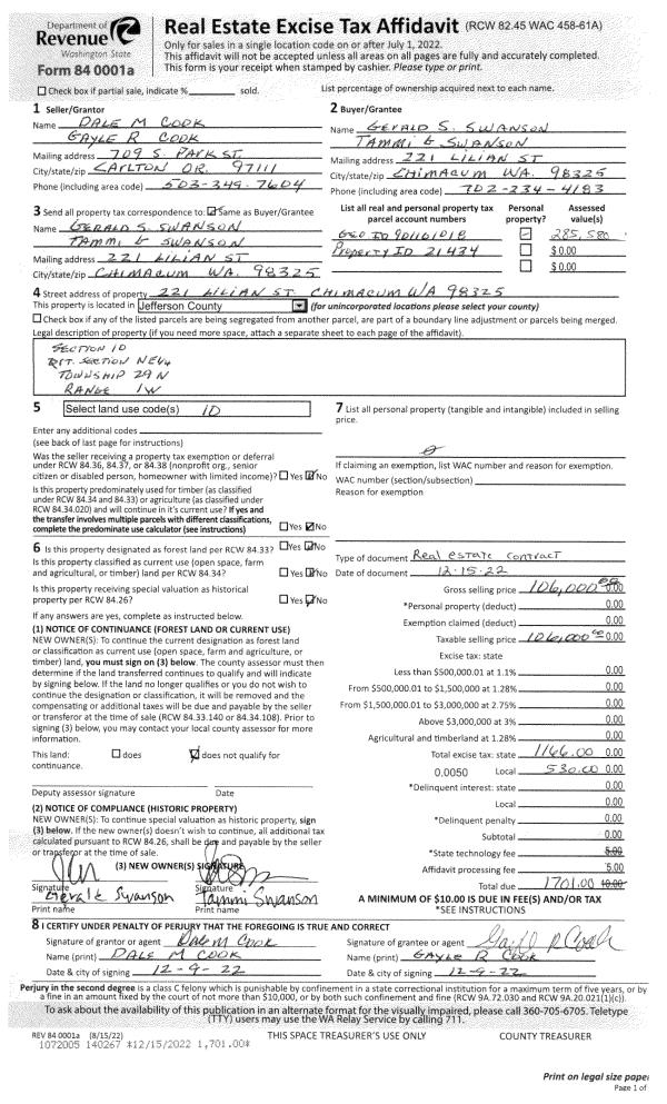 | Mailing Address: | 160 HADLOCK AVE PORT HADLOCK, WA 98339 | % Ownership: | 100.0000000000% |