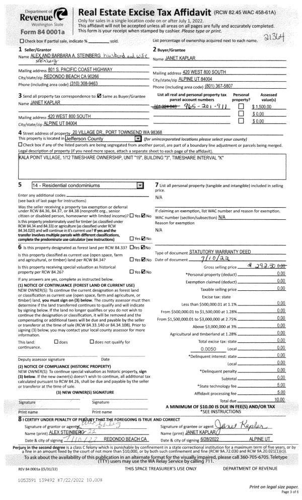 | 3 | 06/24/2003 | SWD | Statutory Warranty Deed | RAYMOR, ANDREA J/CHARLES | LLOYD FAMILY TRUST DTD 3/28/03 | 0 | 0 | $185,000.00 | 97650 | 0 |
