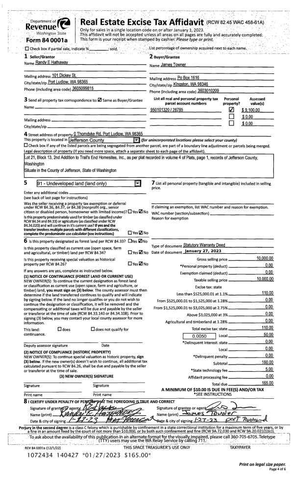 | Mailing Address: | 520 E MOORE ST PORT HADLOCK, WA 98339-9623 | % Ownership: | 100.0000000000% |