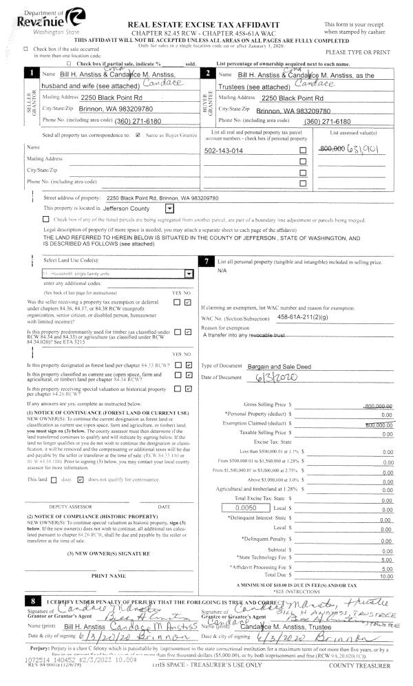 | Mailing Address: | 204 8TH AVE PORT HADLOCK, WA 98339 | % Ownership: | 100.0000000000% |