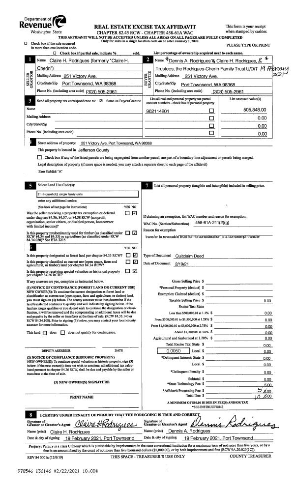 | Mailing Address: | 204 KALA POINT DR PORT TOWNSEND, WA 98368-9530 | % Ownership: | 100.0000000000% |