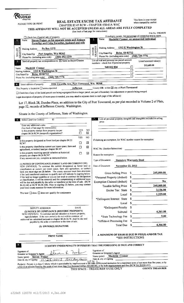 | 3 | 11/12/2013 | TRED | Trustee Deed | RICHARD D KILLAM | KITSAP CREDIT UNION | | | | 120291 | |