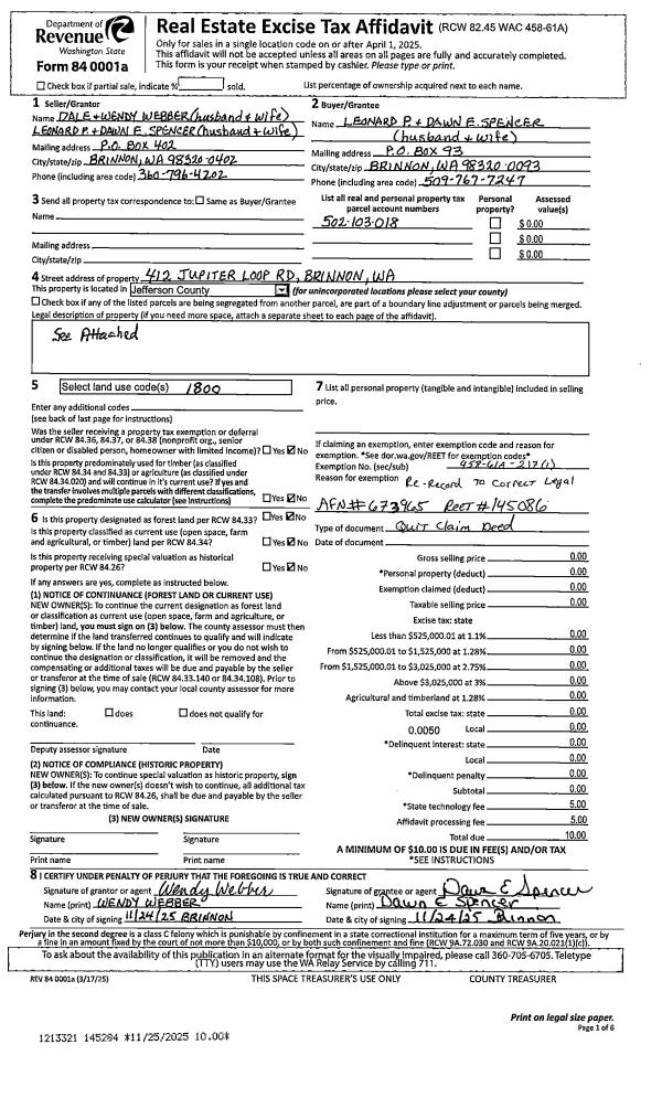 | 1 | 12/06/2000 | SWD | Statutory Warranty Deed | SPRING, PERRY SK/KEARSLEY | STATE OF WASHINGTON FISH & WIL | 0 | 0 | $140,000.00 | 91160 | 0 |
