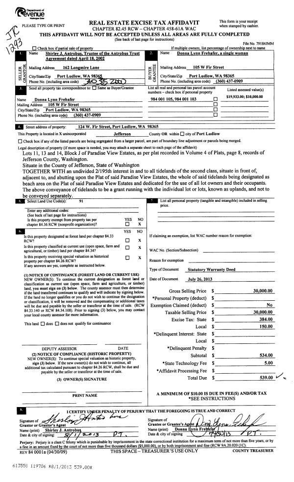 | Mailing Address: | 15 8TH AVE PORT HADLOCK, WA 98339-9607 | % Ownership: | 100.0000000000% |