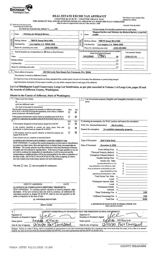 | Mailing Address: | 51 8TH AVE PORT HADLOCK, WA 98339-9607 | % Ownership: | 100.0000000000% |