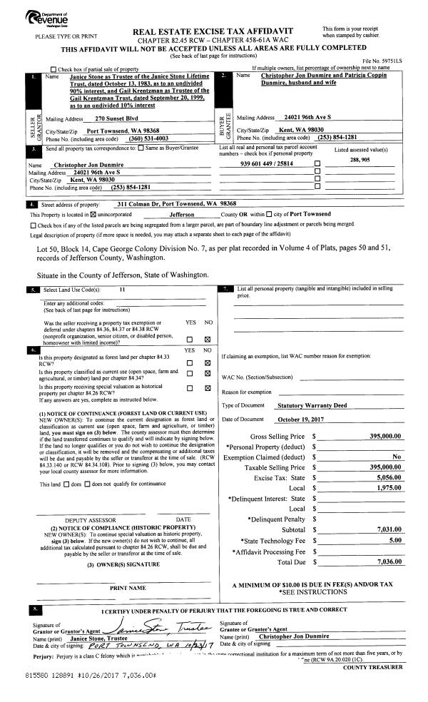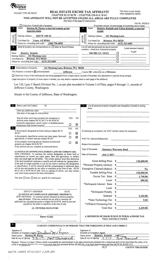 | 5 | 12/11/2017 | WD | Warranty Deed | TIMOTHY J SMITH | FARRELL PROPERTIES LLC | | | $2,500.00 | 129286 | |