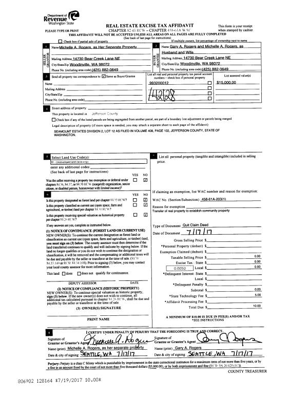 | 1 | 03/19/2018 | QCD | Quit Claim Deed | JASON VINES | CAMERON PIPER | | | | 129761 | |