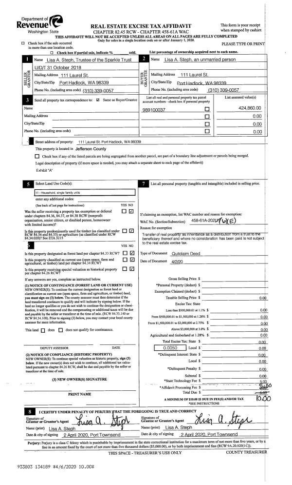 | Mailing Address: | PO BOX 340 CHIMACUM, WA 98325-0340 | % Ownership: | 100.0000000000% |