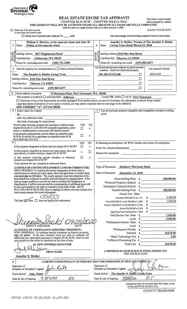 | Mailing Address: | KENNETH F KELLY TRUSTEE JANE KELLY TRUSTEE 2000 W SIMS WAY PORT TOWNSEND, WA 98368 | % Ownership: | 100.0000000000% |