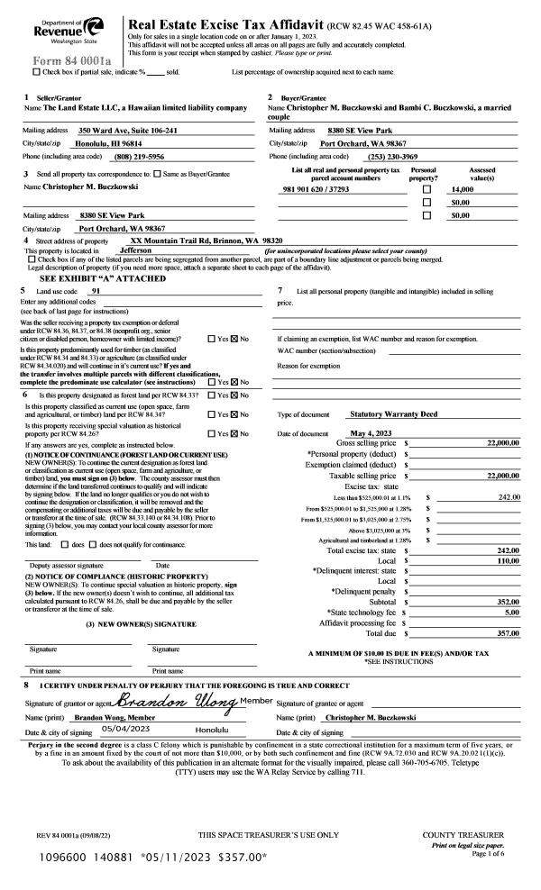 | Mailing Address: | 364 W SWANEY ST PORT HADLOCK, WA 98339-9631 | % Ownership: | 100.0000000000% |
