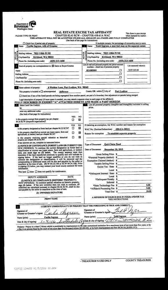| Mailing Address: | 11 ANDERSON ST PORT HADLOCK, WA 98339-9632 | % Ownership: | 100.0000000000% |