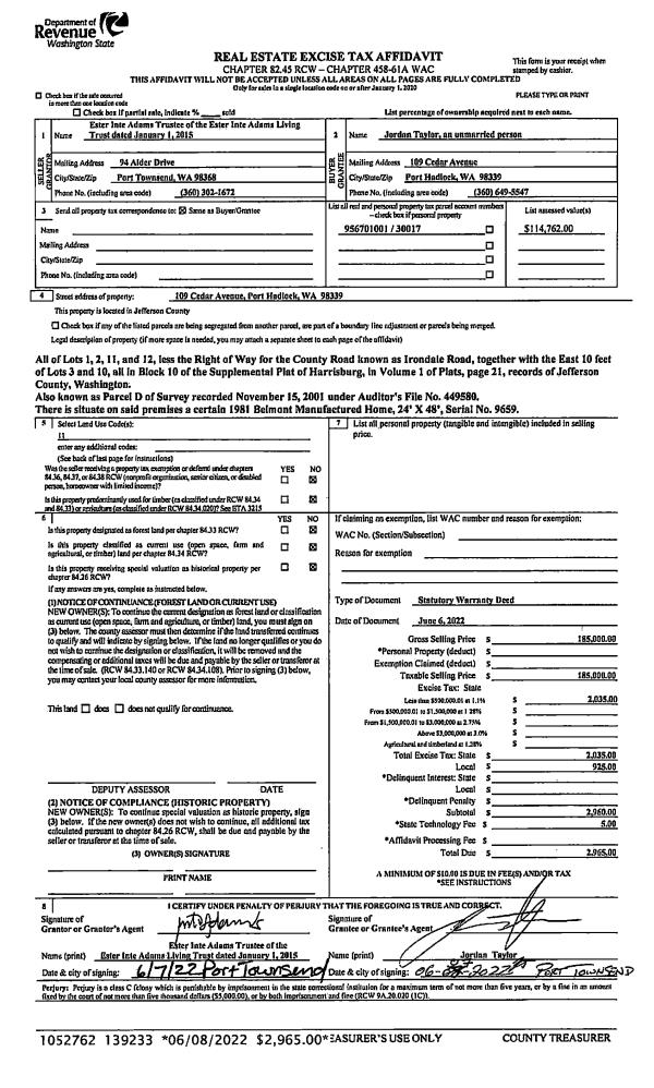 | Address: | 92 LEWIS AVE PORT TOWNSEND, WA 98368 | Mapsco: | 047/017 |