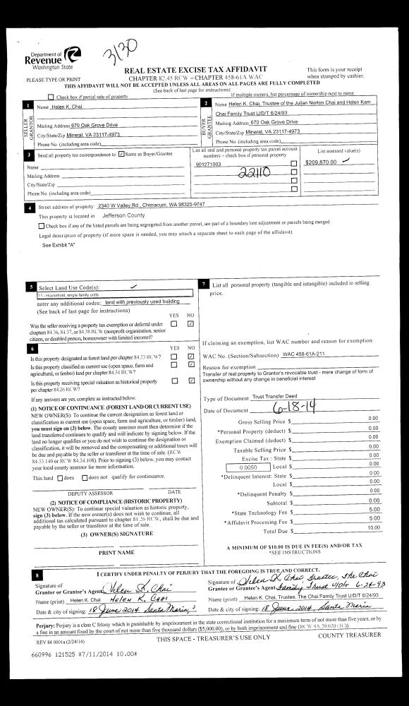 | Mailing Address: | 179 KEYSTONE PL PORT TOWNSEND, WA 98368-5031 | % Ownership: | 100.0000000000% |