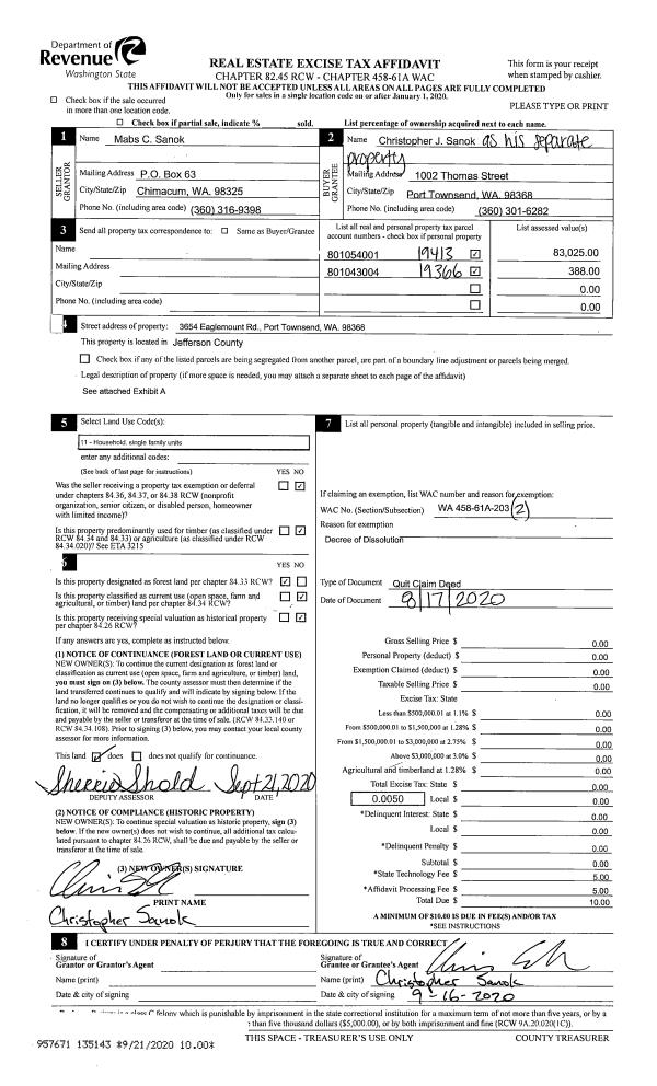 | 1 | 03/22/2021 | SWD | Statutory Warranty Deed | RICHARD J FISKE | JASCHA KOZELISKY | | | $28,000.00 | 136406 | |
