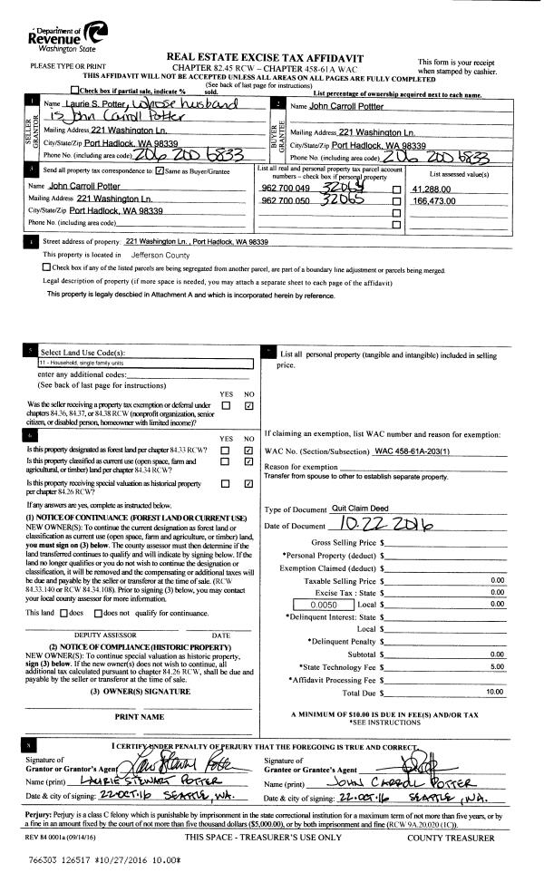 | Mailing Address: | 1033 LAWRENCE ST PORT TOWNSEND, WA 98368-6523 | % Ownership: | 100.0000000000% |