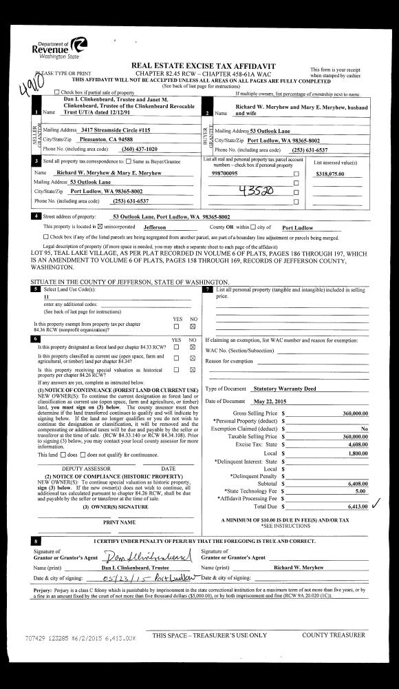 | 2 | 06/19/2017 | SWD | Statutory Warranty Deed | OWEN FAIRBANK | JEFFERSON LAND TRUST | | | | 127894 | |