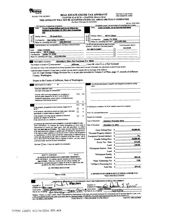 | Mailing Address: | 1033 LAWRENCE ST PORT TOWNSEND, WA 98368-6523 | % Ownership: | 100.0000000000% |