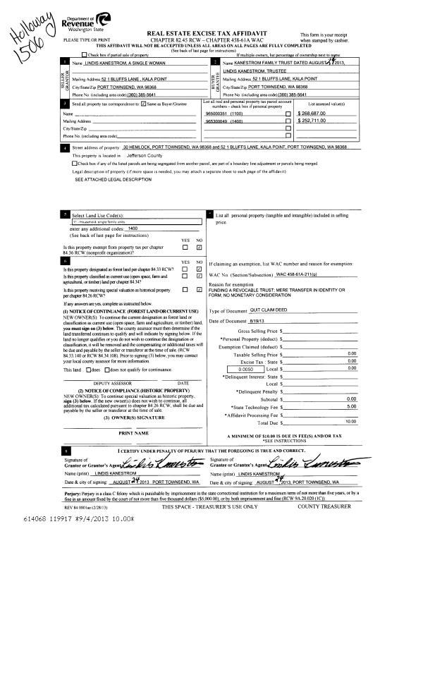 | Mailing Address: | 783 PROSPECT AVE PORT TOWNSEND, WA 98368-2520 | % Ownership: | 100.0000000000% |