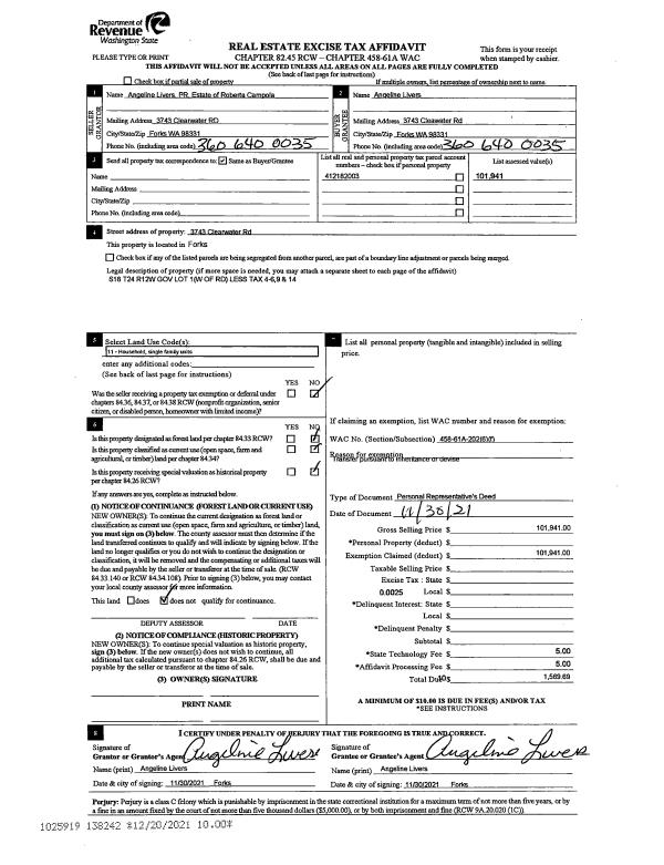 | | | | | Taxes w/o Exemptions: | N/A | | |
