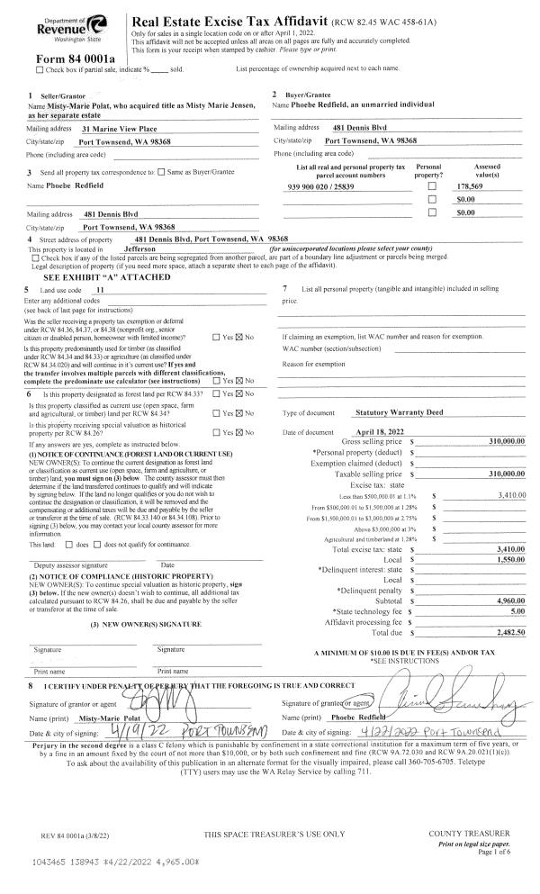 | 13 | 04/01/1994 | SWD | Statutory Warranty Deed | MANN, ERNA C | SETON, W E/MARILYN J | 0 | 0 | $8,000.00 | 73887 | 0 |