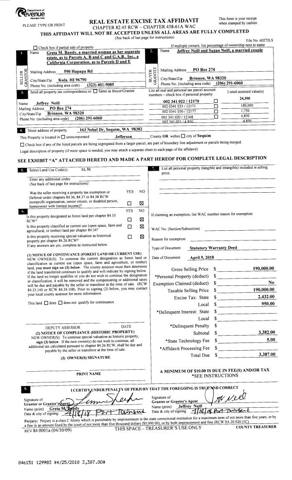 | 3 | 07/20/2017 | SWD | Statutory Warranty Deed | THOMAS J BAY | RICARDO D PEREGRINO | | | $150,000.00 | 128226 | |