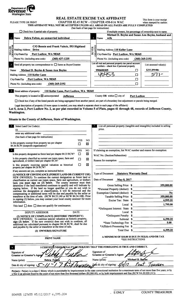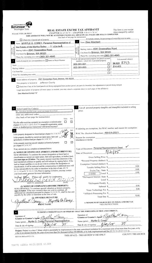 | 7 | 05/24/2016 | SWD | Statutory Warranty Deed | HERBERT L SCHAFER | W E SETON & MARILYN SETON RECOVABLE TRUST | | | $35,000.00 | 125528 | |