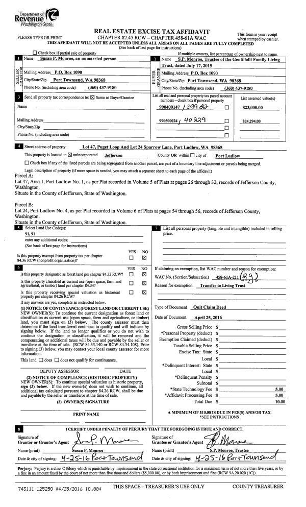 | 6 | 09/14/2016 | QCD | Quit Claim Deed | W E SETON & MARILYN SETON RECOVABLE TRUST | | | | | 126239 | |