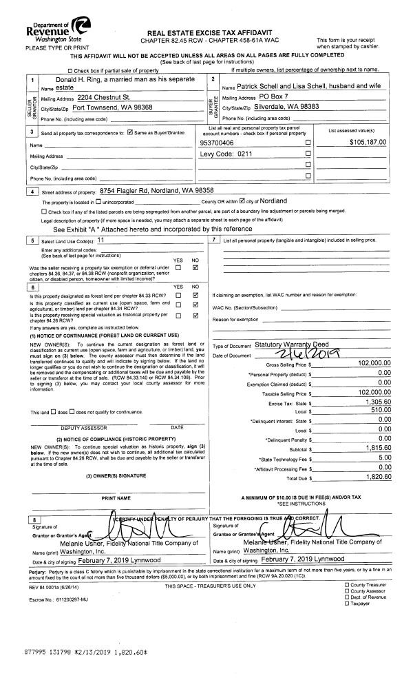 | Mailing Address: | 1228 BLAINE ST PORT TOWNSEND, WA 98368-6506 | % Ownership: | 100.0000000000% |