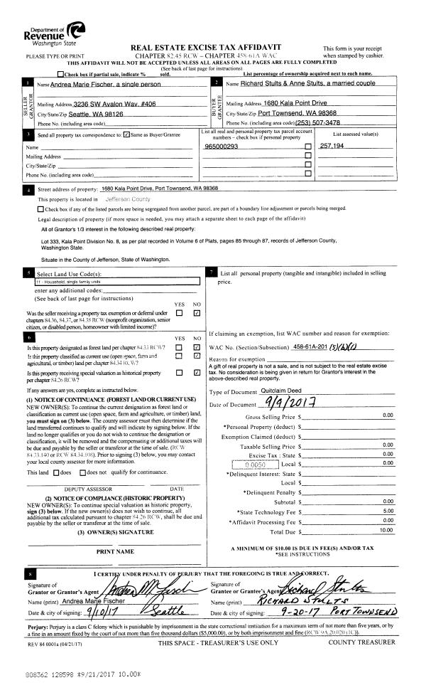 | Mailing Address: | 142 N ANDREW AVE PORT TOWNSEND, WA 98368-2545 | % Ownership: | 100.0000000000% |