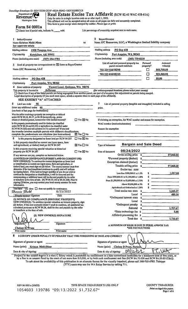 | Mailing Address: | LESLIE J SWEENEY PO BOX 385 PORT HADLOCK, WA 98339-0385 | % Ownership: | 100.0000000000% |