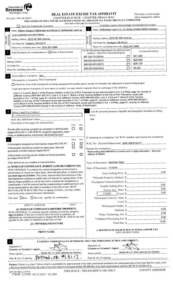 | Mailing Address: | 190 N VICTORY AVE PORT TOWNSEND, WA 98368-2588 | % Ownership: | 100.0000000000% |