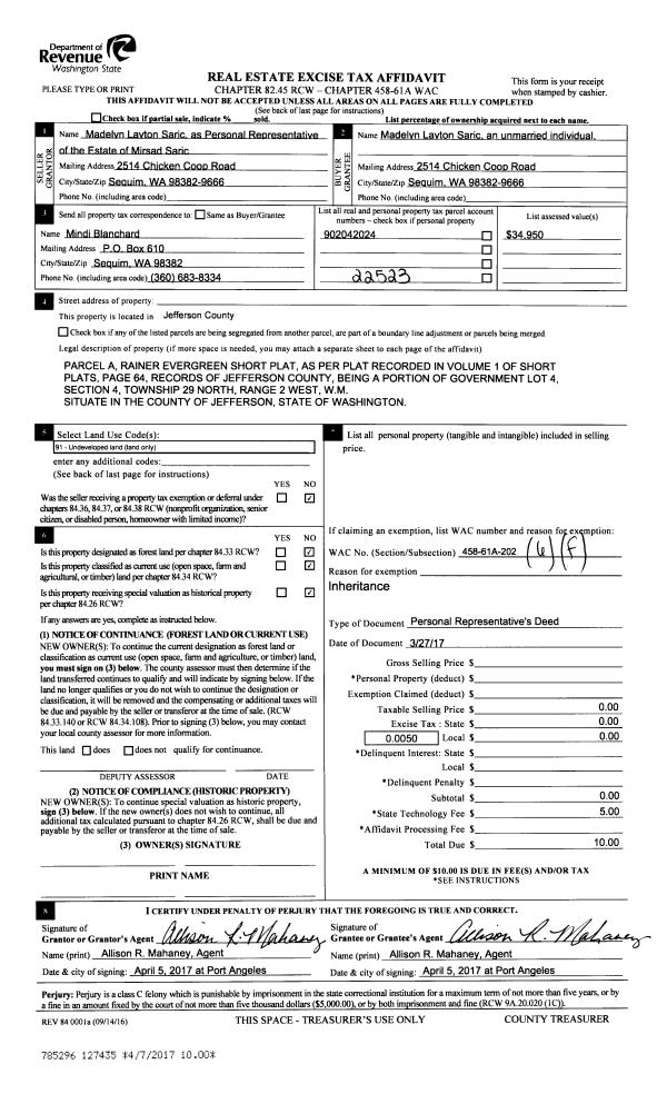 | 3 | 12/15/2017 | TRED | Trustee Deed | MARILYN J SETON IRREVOCABLE TRUST | BRUCE B SETON SR TRUSTEE | | | | 129245 | |