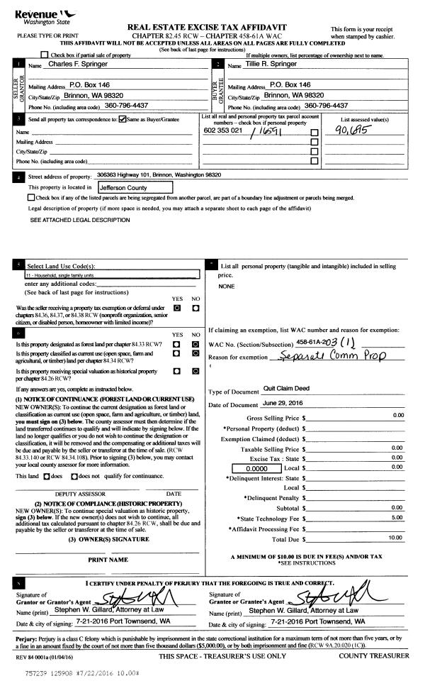 | Mailing Address: | SUSAN M HARGLEROAD 213 N CARNEGIE AVE PORT TOWNSEND, WA 98368-2231 | % Ownership: | 100.0000000000% |