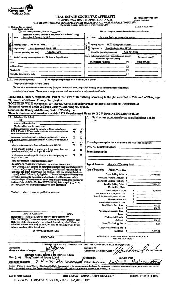 | 1 | 08/07/2015 | SWD | Statutory Warranty Deed | LOUIS AISSEN | RICHARD D CLODFELTER | | | $72,000.00 | 123743 | |