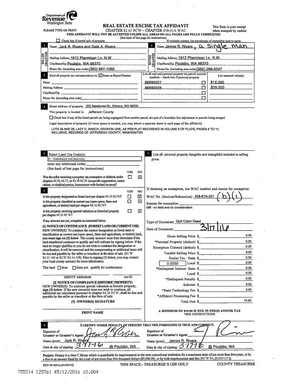 | 1 | 11/30/2016 | QCD | Quit Claim Deed | | | | | | 126745 | |